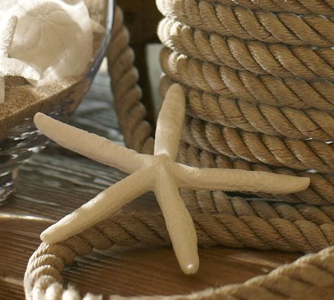 Bringing the beach indoors is one of my favorite decorating memes. I used to have lots and lots of little starfish, but sadly, my dog ate them one day when he was home alone.... Now, I have fake starfish.